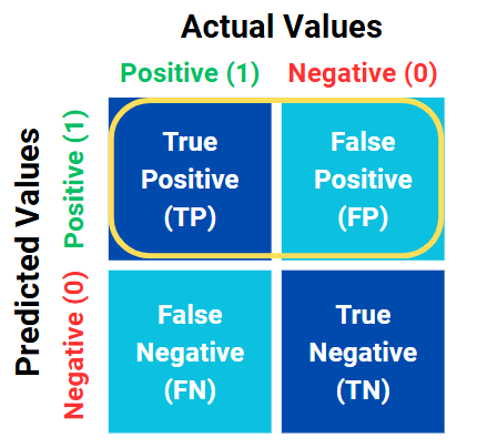 $$ \text{Precision} = \frac{TP}{TP + FP} \quad (2) $$