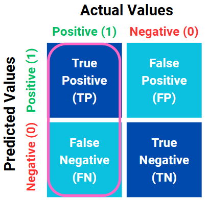 $$ \text{Recall} = \frac{TP}{TP + FN} \quad (3) $$